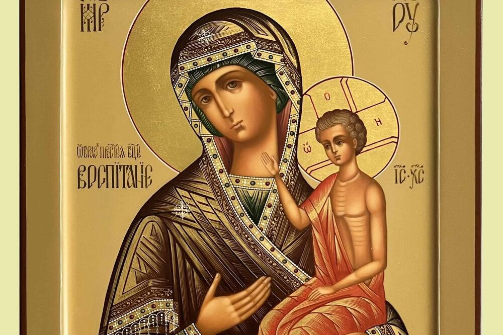Икона Божией Матери «Воспитание» пришла в Россию из Византии в восемнадцатом веке. Это образ, написанный по типу Одигитрия, что в переводе с греческого языка означает Путеводительница. Пресвятая Богородица левой рукой удерживает на коленях Божественного Сына, а правой указывает на Него, как на истинный Путь спасения.